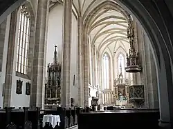 - ↑ Stavitelem lodi snad mohl být parléř Valentin, doložený v městských knihách na počátku 16. stol. Výraz parler (z latinského parlerius, tj. mluvčí) ve středověké němčině znamenal palír, tj. vedoucí stavby nebo také ten, který členům stavební huti vysvětluje záměry vedoucího mistra.