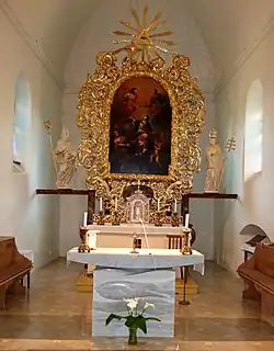 Hlavní oltář z roku 1713 zdobí barokní obraz Nanebevzetí Panny Marie ve zlaceném rámu. Jeden z bočních oltářů nese renesanční obraz Panny Marie a sv. Anny, která chová na klíně Ježíška, druhý pak barokní kříž se sochami P. Marie Bolestné a sv. Jana Evangelisty.