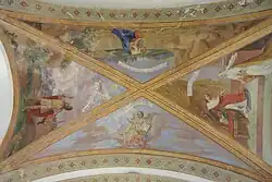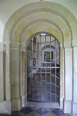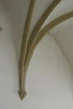 Pod tribunou do lodi ústí vchodová čtvercová předsíňka, která je zaklenutá jedním polem křížové klenby s žebry hruškovitého profilu. Žebra se u stropu stýkají v kulatém svorníku a na stěnu nasedají na jehlancových konzolách.