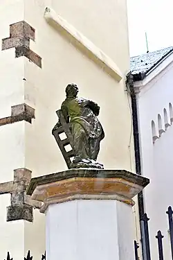 Okolo kostela se nalézal hřbitov, který byl používán do roku 1786.[7] Na pilíři vstupních vrat je barokní socha svatého Vavřince. Pod schodištěm na jižní straně kostela je barokní socha sv. Jana Nepomuckého.