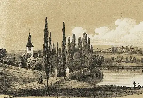 - ↑ FÖRSTER, Ludwig; DEMARTEAU, Amédée; BENKO, Anton. Beschreibende und malerische Darstellung der K. K. österreichischen Staatseisenbahn von Olmütz bis Prag. Wien: Verlag von L. Försters artist. Anstalt, 1845. 24 + přílohy s. Dostupné online. Kapitola list 17. (německy)