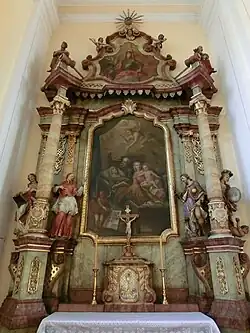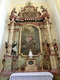 Původně byl oltář zasvěcen sv. Hedvice – patronce Slezska. Oltář pochází z počátku 50. let 18. století. Autorem sochařské výzdoby je sochař a řezbář Kristián Keller z Vápenné, později usazený ve Skorošicích. Obraz na oltáři Smrt sv. Josefa namaloval malíř Eliáš František Herbert roku 1763. Nápis na obraze je z Lukášova evangelia: „Nunc dimittis servum tuum Domine, secundum verbum tuum in pace“ (Nyní, Pane, můžeš podle svého slova nechat svého služebníka odejít v pokoji). V oltáři jsou ostatky sv. Bonifáce. Obraz nahoře je sv. Hedvika, po stranách jsou sochy sv. Barbory a sv. Notburgy. Okolo hlavního obrazu jsou čtyři sochy: sv. Šebestián, sv. Monika, sv. František Xaverský a sv. Jan Evangelista.