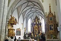 - barokní hlavní oltář z let 1766–1769 (A. Altomonte), s pozdně gotickou sochou Kájovské madony (kolem 1500)