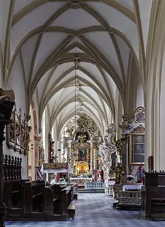 Dříve, v roce 1482, byla dokončena stavba Getsemanské kaple u severního portálu a v roce 1490 byly dokončeny boční lodě.[13] Kaple svatého Jakuba vznikla v letech 1500–1501. O půl století později byla loď zaklenuta zděnou klenbou. Do té doby zde byl dřevěný strop.[14]