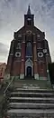 Jednolodní neorientovaná novogotická stavba z režného zdiva s opěráky a polygonálním závěrem. Hranolová věž vystupuje ze vstupního průčelí. Kostel je dlouhý 42 m a široký 10 m. Věž je vysoká 52 m.[7][8] Ve věži byly tři zvony (jeden zvon pocházel z roku 1551, druhý z roku 1614).[9]