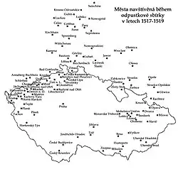 Sbírka začala 22. března 1517 v Mostě a trvala do 1. května 1519. Peníze se vybíraly v Čechách, na Moravě, v Sasku, Lužici a ve Slezsku. V roce 1517 se vybralo 5379 kop a 49 míšeňských grošů, v roce 1518 4984 kop a 52 grošů a ve třetím roce 1375 kop a 47 grošů. Spolu s dalšími dary se podařilo získat celkem 12 155 kop a 45 grošů. Město muselo z konečné sumy odevzdat třetinu papežské kurii. Zbývající peníze byly použity na výstavbu kostela a dalších staveb, jako fary nebo školy.[7]