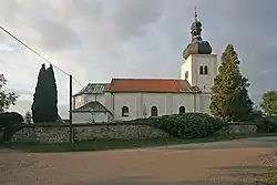 Čtyřhranná kostelní cihlová věž byla přestavěná roku 1701 a je zakončena bání s křížem. Původní kostelní báň byla v roce 1929 sražena vichřicí a následně byla nahrazena současnou bání s pozměněným tvarem.