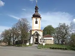 - ↑ Podle některých zdrojů je kostel zasvěcen Nanebevzetí Panny Marie.