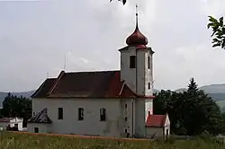 Jde o jednolodní pozdě barokní stavbu s výraznou věží a odsazeným, trojboce zakončeným presbytářem. Na jeho severní straně je umístěn depozitář, k jižní zdi přiléhá obdobná čtyřboká sakristie. V ose západního průčelí je vystavěna věž s obdélnou předsíní, která tvoří hlavní vstup do kostela. V ní se nachází portál s rytým letopočtem 1809, jménem stavebníka a dalšími iniciálami. [4]