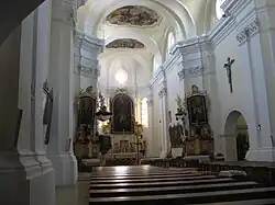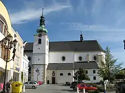 Dnešní barokní podobu získal kostel r. 1781, kdy byl po velkém požáru města přestavěn.