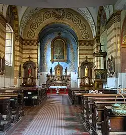 Část výmalby v interiéru tvoří malby provedené v roce 1903 pod vlivem beuronské umělecké školy pražským akademickým malířem Martinem Matoušem. V letech 1913–1914 tyto malby doplnil akademický malíř Jan Urban. Většina jednotného vybavení kostela je v pseudobyzantském stylu a v letech 1914–1916 ho dodala firma bratří Bušků ze Sychrova.