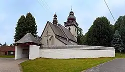 Kostel je obklopen kamennou zdí se vstupní branou. Zeď z lomového kamene vysoká cca 2,2 m pochází patrně ze stejné doby jako kostel a je zachovaná v téměř původním středověkém stavu. Po celém obvodu je krytá sedlovou stříškou se šindelovou krytinou, která prošla v roce 2017 rozsáhlou rekonstrukcí.[4]