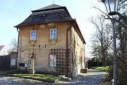 U kostela stojí pozdně barokní farní budova z roku 1807. Je obdélná, jednopatrová s mansardovou střechou. Průčelí je zdobeno střídmě. Okna jsou se šambránami s klenáky.[1]