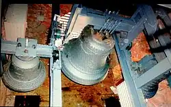 Existuje indicie, že velký zvon svatého Michala Archanděla z roku 1824, byl odlit až po velkém požáru 6. srpna 1824, kdy shořela celá obec i s věží tehdejšího kostela, a přitom oheň kostelní zvon roztavil. Nový zvon z roku 1824 byl umístěn ještě do provizorní věže požárem poškozeného kostela. Teprve po rozebrání starého a dokončení nového kostela byl tento zvon v roce 1859 přemístěn do věže nového kostela. Ostatní dva zvony, odlité v roce 1924, přibyly ve věži kostela jako vzpomínka na uplynutí 100 let od zničujícího obecného požáru.