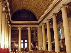 Téměř celou stěnu apsidy pokrývá grisaillová malba Alexandra Denise Abela de Pujol (1787–1861) představující svatého Diviše kázajícího v Galii. Od téhož autora pocházejí také fresky s tématem Boha Otce, Ježíše a Panny Marie. V pravé postranní kapli sv. Jenovéfy se nachází Delacroixova freska Sejmutí z kříže z roku 1844.