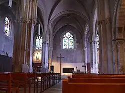 Trojlodní prostor je členěný zašpičatělými arkádami na osmibokých pilířích z 15. století. Pilíře pod zvonicí pocházejí z přelomu 12. a 13. století a jsou zdobeny hlavicemi s květinovými motivy. Chór je rohový a napojuje se na něj kaple zasvěcená svatému Blažejovi a Panně Marii.