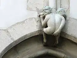 - ↑ Erb s trofejní výzdobou se původně nacházel nad vstupem do kaple na jižní vnitřní stěně presbytáře. Při regotizaci byl převeden do městského lapidária a zazděn do severního křídla Biskupského dvora, a poté byl teprve instalován Fuchsem nad náhrobek.