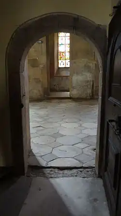 Sakristie přiléhá jihovýchodní zdi presbytáře. Částečně na jejím místě a na místě dnešního presbyteria stál původní kostel, jenž vyhořel v roce 1270.