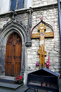 V západní polovině lodi jsou na severu i na jihu přímo pod oknem prolomeny zcela obnovené portály, uzavřené oslím hřbetem s kyticí a fiálami po stranách. Současná podoba obou portálů vznikla až pod vedením architekta Gruebera.