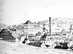 ![]() Kostel svaté Alžběty se špitálem před zbořením | |