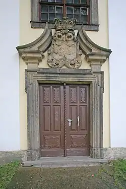 Pod kostelem se nachází krypta, v níž je pohřbeno několik členů rodiny Ledvinků z Adlerfelsu – ti byli vlastníky zámku a panství v 19. století.[2]