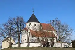 Kostel byl postaven pravděpodobně až kolem 15. století, dle jiných pramenů v 13. století, nicméně dle původní rotundy se soudí, že původní rotunda-kostel byla postavena již velmi dávno, snad má být dle zdrojů z doby příchodu svatých Cyrila a Metoděje, zdivo původní rotundy je velmi silné. V roce 1548 byl kostel rozšířen, o několik let později kostel i s farností přešli přes protestantskou víru, zcela jistě byl evangelický v roce 1601. Katolíci pak farnost převzali až v roce 1621, patronát patřil Moravským Budějovicím, později Myslibořicím (od roku 1650) a od roku 1660 opět Moravským Budějovicím. Od roku 1670 pak byl patronát veden pod Blížkovicemi. Kostel pak byl opět rekonstruován a rozšířen mezi lety 1740 a 1745, ku kostelu byly přistavěny dvě boční lodě resp. kaple, jedna s oltářem zasvěceným Panně Marii (dříve snad Janu Nepomuckému) a druhá s oltářem zasvěceným Andělu Strážnému.[3]