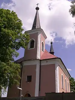 Současný pozdně barokní kostel byl dostavěn a slavnostně vysvěcen roku 1790 na místě staršího kostela, poškozeného při bouřce roku 1785. Roku 1900 byla vyměněna fasáda i střecha kostela.[3]
