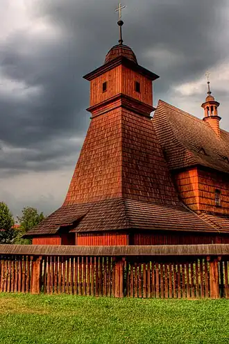Kostel nese typické architektonické rysy příznačné pro oblast dřevěné lidové architektury severní Moravy a Horního Slezska. Kostel byl vystavěn na pomezí pozdně gotického a raně renesančního stylu. Hlavní a boční vstup do lodi kostela zdobily dva pozdně gotické portály ve tvaru oslího hřbetu, avšak půlkruhový portál spojující presbytář kostela se sakristií již nesl patrné znaky rané renesance; portály musely vzniknout na přelomu umění pozdní gotiky a přicházející renesance. K chrámu se váže lidová pověst, že kostel původně pochází z Metylovic, odkud byl přenesen, avšak tuto pověst nelze doložit žádnými prameny a lze ji tak vzhledem ke kontextu 16. století pokládat za zcela nepravděpodobnou.