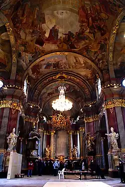 Pohled na klenbu s freskami Václava Vavřince Reinera -