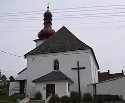 Na obdélnou loď se západní předsíní navazuje zúžené kněžiště s trojbokým závěrem. Na rozmezí lodě a kněžiště je přisazena mohutná hranolová věž s barokní cibulovou bání s výrazně rudým nátěrem. Věž je s interiérem kostela spojena pouze přes sakristii, která k ní přisedá od východu. Dalším přístavkem je zastřešené vnější schodiště na kruchtu při severozápadním rohu. Na jižní straně lodi se dochovaly dvě původní okenní kružby, stejně jako u oken kněžiště.[1]