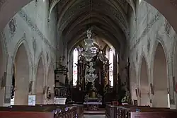 Roku 1773 vznikl požár, který v kostele poničil krov, klenbu a presbytář. Po něm dostala hlavní loď valenou klenbu, klenby v bočních lodích jsou křížové s žebry.