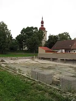 U severní stěny kostela stojí socha Bolestného Krista (Ecce homo) z roku 1751 s reliéfem svatého Antonína na soklu. Ještě dále na sever najdeme sochu sv. Anny s malým Ježíškem s reliéfem sv. Václava. Pochází snad z roku 1746 a obnovena byla v roce 1835. V obci je barokní kamenný sloupek z roku 1694 a druhý z roku 1719, se soškou sv. Antonína, se nachází v polích. Zajímavý je postsecesní pomník padlým z I. světové války s motivy dělostřeleckých granátů, stojící jihozápadně od kostela. U obce se nachází výklenková kaple z roku 1813, která byla obnovena v roce 1955.[2]