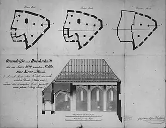 ![]() Kresba kostela vytvořená v roce 1835 F. Domkem | |