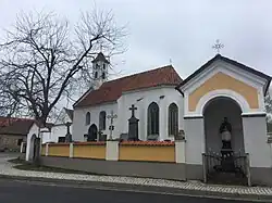 Kostel je dominantou obce, avšak i přesto jde o drobnou stavbu, kterou lze snadno přehlédnout. Stavba se nachází přímo v centru obce hned vedle hlavní silnice. Je obklopen hřbitovem zakončeným zdí, ve které můžeme najít malou výklenkovou kapli se sochou sv. Jana Nepomuckého z roku 1851.