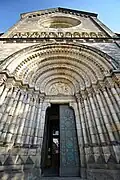 Kostel je postaven ve stylu pozdně románské baziliky se silně převýšenou hlavní lodí a dvěma věžemi. Půdorys je rozvržen na předsíň, tři lodi a presbytář, který je zakončen polokruhovou apsidou mezi dvěma kaplemi v podvěží, rovněž s polokruhovou apsidou. Stavba není orientovaná, sleduje pravoúhlou uliční síť, takže presbytář směřuje k jihojihovýchodu.