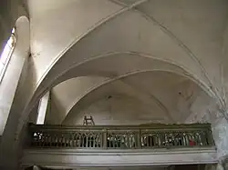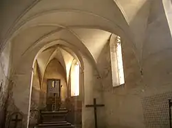 Loď je zaklenutá třemi poli křížové klenby svedených na konzoly jednoduchého tvaru. Presbytář je zaklenut paprsčitě. Před oltářem pod náhrobní deskou je vstup do hrobky, kde jsou pohřbeni pacienti z tehdejšího špitálu, kteří podlehli moru. V oblasti hlavního portálu si můžeme povšimnout na levé i pravé části dvou náhrobních desek. V západní části je vystavěn kůr, k němuž vede dřevěné, provizorní, dvouramenné schodiště. Zábradlí je zdobeno slepými kružbami.