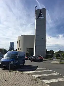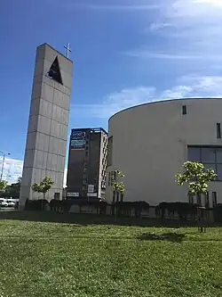 Stavba se skládá z kostela, pastoračního centra a věže a je doplněna garážemi a parkovištěm. Půdorys kostela je elipsovitý, má osy 31x25 m, s jedním podzemním a pěti nadzemními podlažími. Štíhlá železobetonová věž s třemi zvony a vnitřním schodištěm je vysoká 30 metrů.