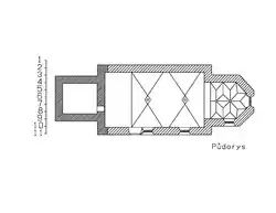 Kostel je jednolodní s polygonálním (pětibokým) presbyteriem s žebrovou hvězdicovou klenbou. Stěny presbyteria jsou vyzdobeny malbami se symboly evangelistů. Nevelké presbyterium (5,60–5,70 m[8]) se do lodi otevírá jednoduchým gotickým obloukem. Vchod do lodi je jednoduchý, s přímým nadpražím.