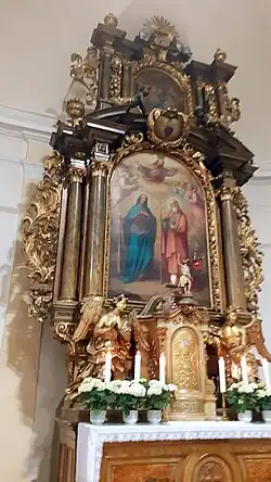 Boční oltář sv. Anny na epištolní (pravé) straně zdobí obraz Panny Marie od Antonína Lublinského z 2. poloviny 17. století. Na protějším oltáři, zasvěceném sv. Josefovi, se nachází obraz Piety z 18. století. V zadní části kostela je na pravé straně oltář sv. Vincence Ferrerského s obrazem světce, který namaloval Josef František Pilz v roce 1777. Na oltářní menze sem byla v roce 2010 umístěna kopie sošky Pražského Jezulátka. Na protější straně lodi je křídlový oltář sv. Josefa z konce 19. století.[10]