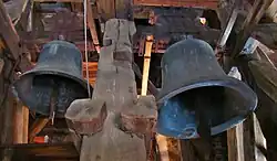 zvony Vojtěch (1508) a Gothard (1494)zvon Michal, pochází z Vřesiny u Hlučína (dar farnosti při kostelu sv. Viléma Aquilánského, zde instalován roku 2008) a byl odlit po 2. světové válce slévárnou Rudolfa Sýkory v Mariánských Horách v Ostravě, průměr 60 cm, odhadovaná hmotnost 130 kg, ladění as2. Zvon je osazen elektropohonem a plní roli „Poledníku“.