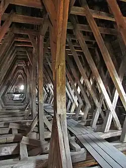 Krov kostela z let 1452 (loď) a 1477 (presbytář)