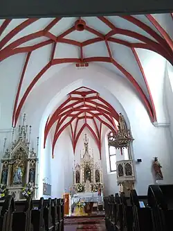 Hlavní loď, dlouhá přibližně 14 metrů a vysoká 8,6 m je podepřena šesti vnitřními a dvěma vnějšími pilíři, které plní statickou funkci přenosu zatížení klenutého stropu. Postupujíce směrem od západu, na severní stěně jsou klenbová žebra nesena profilovanými nábežníky, které jsou následně osazeny na zmiňovaným pilířích, přibližně ve výšce pěti metrů. Ve střední části lodi, kde se nacházejí dva vnitřní pilíře na každé straně, žebra navazují na pilířové nosný systém přibližně ve stejné výši, zmíněných, pěti metrů, bez nábežníků, přípor či konzolí. V místě ukončení lodě a napojení apsidy se opakuje řešení ze západní části a tedy, žebra jsou osazeny na nábežnících. Loď je zaklenuta charakteristickou hvězdicovitě síťovou klenbou s vloženými mezipolemi v trojité návaznosti. Klenbu tvoří žebra se dvěma typy profilů, jednoduchým hranolovitým a hranolovitá s dvojitým vyžlabením. Osvětlení centrálního prostoru je zajištěno sedmi okny, přičemž čtyři z nich z nich se nacházejí na západním průčelí nad, již zmíněným, lomeným obloukovitým portálem, ostatní tři jsou umístěny na jižní straně kostela.