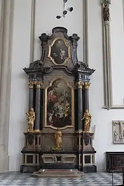 - Oltář sv. Josefa: obraz Smrt sv. Josefa od F. V. Korompaye (1762), v nástavci obraz sv. Alžběty udílející almužnu od Josefa Sterna (1761),[pozn. 2] na menze stojí socha sv. Josefa s Ježíškem