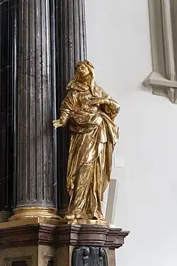 - ↑ Oltář byl původně zasvěcen sv. Kříži a uprostřed visel obraz Josefa I. Sadlera: Sv. Jan Evangelista a Máří Magdaléna pod Kristovým křížem. Od Sadlera zůstal zachován obraz Boha Otce v nástavci. Titulní obraz byl v 19. století nahrazen dílem Wickatovým a později převeden do sbírek Muzea města Brna.