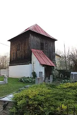 Poblíž kostela na hřbitově se nachází zvonice. Je dřevěná a stojí na podezdívce.[2] Na hřbitově se nachází také márnice.