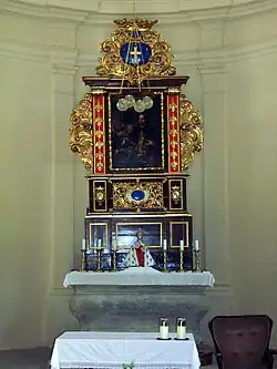 Hlavní oltář pocházející z roku 1710,[1] přenesený sem byl patrně z některého ze zrušených kostelů, byl rekonstruován po povodni v roce 2002. Je na něm obraz sv. Jana Nepomuckého. Další vybavení, které nahradilo původní historizující vybavení z 19. století a bylo zničeno povodní, pochází ze začátku 21. století.
