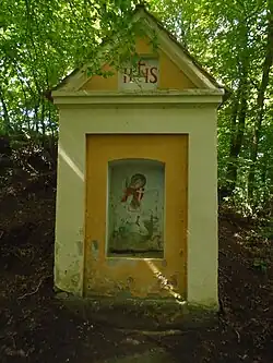 Ve skalách u Hradska se nachází barokní výklenková kaple.[3]