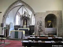 Na jednom oltáři se nacházela pozdně gotická socha Panny Marie „s hruštičkou“. Nyní je umístěna v depozitáři. V portále na jižní straně lodi bývala umístěna gotická plastika sv. Benigny neboli Svaté Dobrotivé. Portál původně sloužil ke vstupu do věže, kde byly uloženy bohoslužebné předměty, později pro vstup na kůr. Nový kůr, i s novým schodištěm, byl zřízen roku 1870.