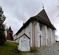 Dřevěná renesanční zvonice se nachází vedle kostela v ohradní zdi. Nachází se severně od kostela. Zvonice byly v dějinách sakrální architektury na Slovensku zvlášť výraznou a významnou skupinou staveb a tato zvonice patří k nejkrásnějším dílům slovenských tesařských mistrů. Postavil ji mlynář Ján Polóni v roce 1673. Je to dřevěná konstrukce v podobě zkosené věže pokryté šindelem. Na jejím vrcholu se nachází arkádový ochoz. Věž je zastřešena šindelovým jehlanem s malou cibulí. Ve věži je gotický zvon pravděpodobně z 15. století a další zvony z roku 1924. Zvonice sloužila nejen k církevním účelům, ale také k ohlašování, například v případě požárů, válečného nebezpečí a jiných mimořádných událostí. Při stavbě zvonice nebyl původně použit jediný hřebík.