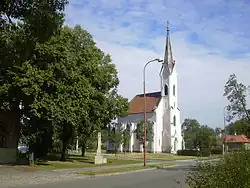 Stavba nese znaky pseudogotiky: Nápadné opěrné pilíře mezi okny, gotické zakončení střechy věže, ostře lomené horní okenní oblouky, stejně jako žebra stropní klenby. Stavbu z velké části financovala obec za podpory mnoha dobrodinců.